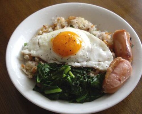 100%岡山弁で説明しようというだけのことです ◎12月2日の晩ごはん(夫がおらん日よ)・にんじんとタアサイの混ぜごはん タアサイはな。 大滝秀治に似とる父が趣味で作った野菜で、 私の好物なんじゃ。 目玉焼きはなんかチャンピオンベルトみたいになってしも…